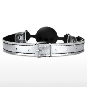 Gagicile cu minge sunt o alegere clasică în jocul BDSM și, cu această versiune în argintiu metalic, veți adăuga și un element estetic atrăgător în cameră. Calitatea și durabilitatea acestui set sunt garantate, iar siliconul neted și catifelat va asigura confortul și placerea partenerului. Îndrăzniți să explorați noi senzații și să pătrundeți într-o lume de plăcere și dominare.