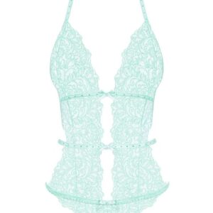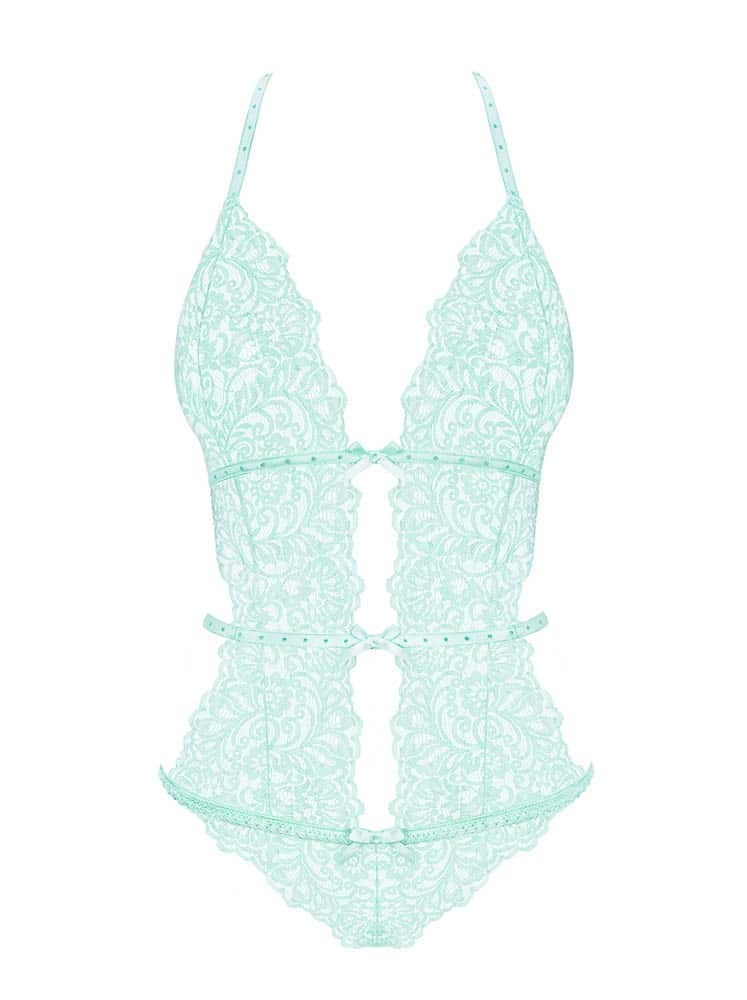 Gorgeous, mint Delicanta teddy with extra adjustable straps, sexy cut-outs and lacy panties.