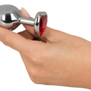Thanks to the anatomical shape of the pin, it is a perfect anal irritant. At the end of the peg is an impressive, expanding heart-shaped base that adorns a shimmering, red, acrylic stone that looks like a real shimmering piece of jewelry.
