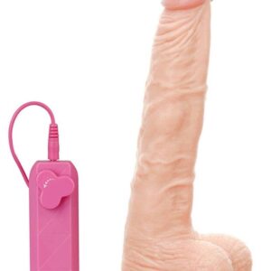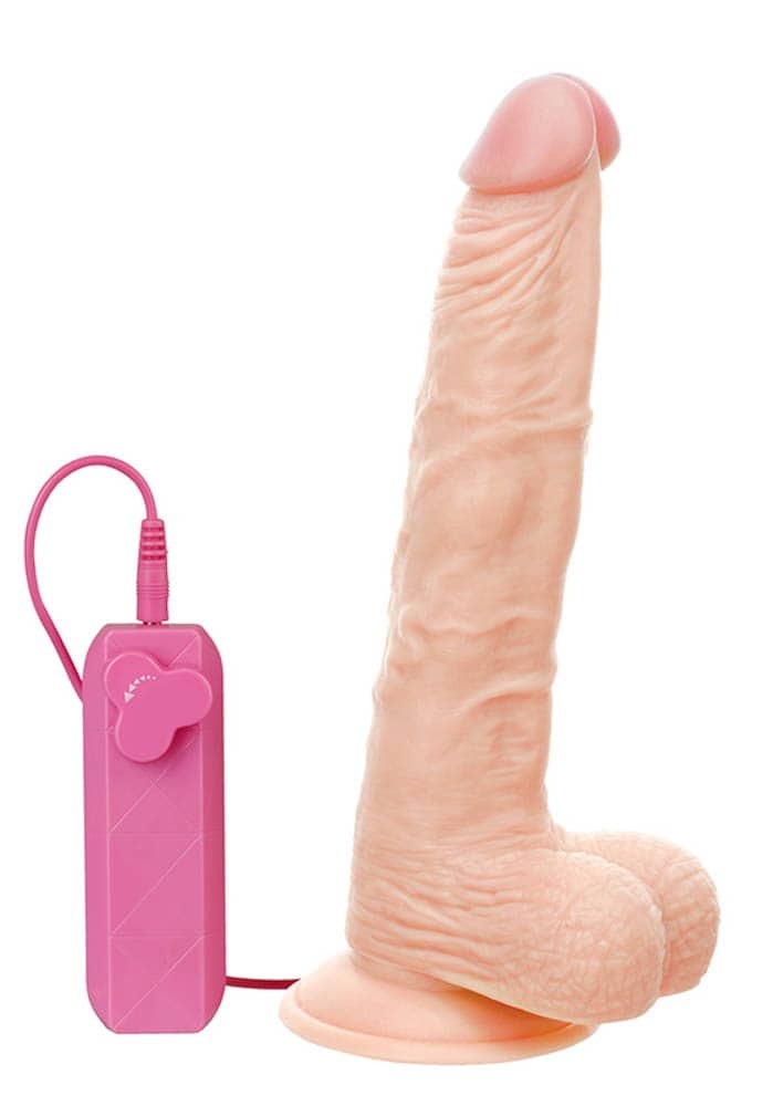 High performance and super realistic shaped vibrating dong.Comes with a strong suction cup that holds it in position with ease.Simply operated by 3-speed hand control box. Waterproof. Phthalate free.Batteries not included.