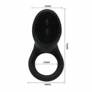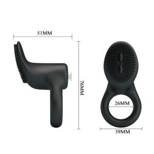 Inel de silicon pentru penis cu vibrator și stimulator pentru clitoris. Cu un senzor sensibil la piele, acest inel pentru penis este un companion uimitor și un must-have. Este fabricat din silicon și este elastic pentru a se potrivi perfect oricărui dimensiuni de penis. Vibratiile acestui inel pentru penis vă duc pe dumneavoastră și pe partenerul dumneavoastră la orgasm în timp ce vă oferă o erecție de lungă durată și întârzie ejacularea. Acest inel pentru penis poate fi utilizat și pentru jocuri de unul singur și poate fi controlat ușor. – Inel pentru penis, vibrator la atingere, silicon, 2 baterii LR1130.