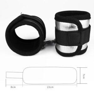 Submit to your lover with struggle my soft handcuff, Strong and comfortable with velcro straps and clips to connect them to each other or to other bondage items with D-rings Ideal as an introduction to restraint and light bondage play. Strong, secure and exciting restraint play is yours to discover with these bondage handcuffs. With a sumptuously soft velvet lining and sleek silver neoprene exterior, they are perfect for first-time restraint play.