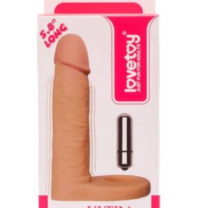 Double her pleasure with this Vibrating realistic 5.8 inch strap-on anal dildo. Secure the penis and testicle rings for an instant boost to your erection, then guide the smooth, veined shaft into her anus wist lavishing all your attention on her other sweet spot