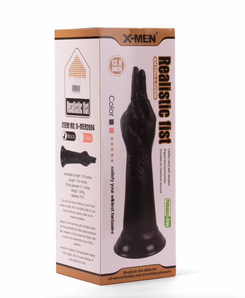 A lifelike dildo made from a material similar to body tissue, moulding human fingers, hands and arms. Suction cup can be used to attach to a flat surface.